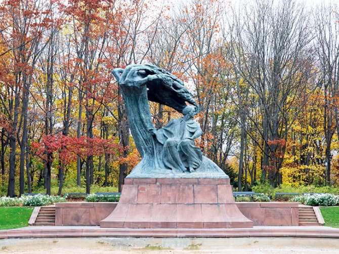 Known as the “poet of the piano” for his gorgeous melodies, Frédéric Chopin won fame in youth as the “prodigy of Warsaw,” where he lived from age six to twenty. A huge modernist monument to Chopin (right of bottom) can be found in the sprawling Royal Baths Park. Free outdoor concerts, a local favorite, are held by the monument every Sunday from May to September. To celebrate Chopin’s bicentennial, fifteen “Chopin benches” (above) were installed throughout the city. Push a button, and you’ll hear clips of his famous polonaises or nocturnes. Grownups love them almost as much as kids. Chopin souvenirs like pens and notebooks (bottom left) can be purchased at the Chopin Museum and throughout the city. His name even graces the Warsaw Chopin Airport!