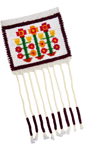 These “sumak” wall hangings from Bobowa in southern Poland feature cute, simple motifs like flowers, animals, and traditional outfits. 160 zł.