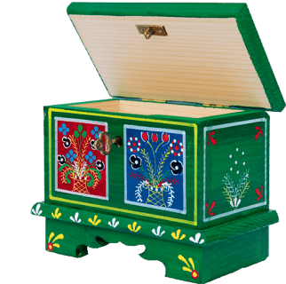 Back when Krakow was the capital, women would pack their clothes into a colorful hope chest before they married. These miniature versions are a darling way to store small items. 60 zł.