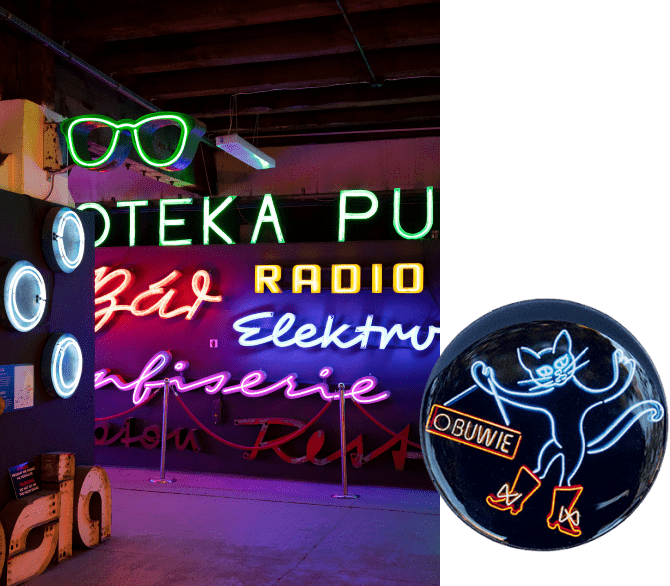 The Neon Museum is housed in the “Pocisk” (bullet) Building, a former munitions factory in the up-and-coming district of Praga. Originating as a means for advertising, neon signage added color and a touch of personality to libraries, florists, shoe stores, and photo shops of the Cold War era. Surveying that history, the museum displays over 200 unique neon works. A great stop on any foray through the city.