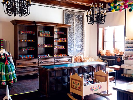 Located on a colorful block of skinny buildings facing a historic plaza. Gathering folk crafts and art from all over Poland, the store offers traditional garments like colorful skirts and striking floral embroideries, along with handwoven lace from Koniaków, near the Czech border, and fun objects like this little bird (upper right, 20 zł) from Zakopane, a favorite summer getaway. Survivors of socialism, these folk art traditions make fantastic souvenirs.