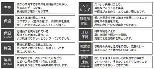 *女性用ヒートテックインナーの機能